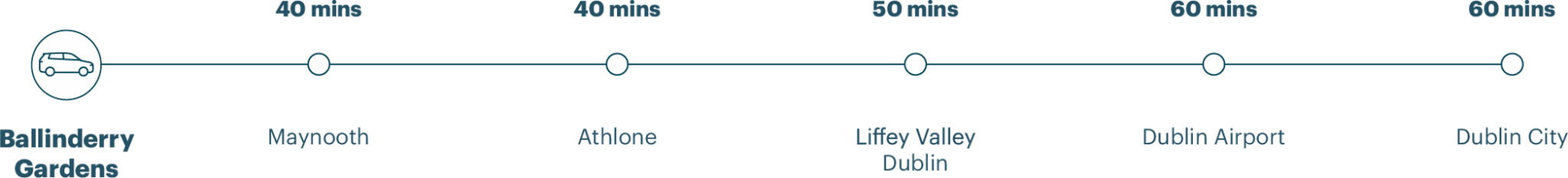 Ballinderry Gardens places you within easy reach of Mullingar’s lively mix of culture and everyday comforts. It’s a town alive with character, shaped by lakes, music and a welcoming spirit. Heritage and modern living sit side by side, with cafés, schools, sports and green spaces creating a vibrant daily life. Its market square, festivals and musical legacy add colour and continuity, making it a place where community feels strong and the future feels secure.